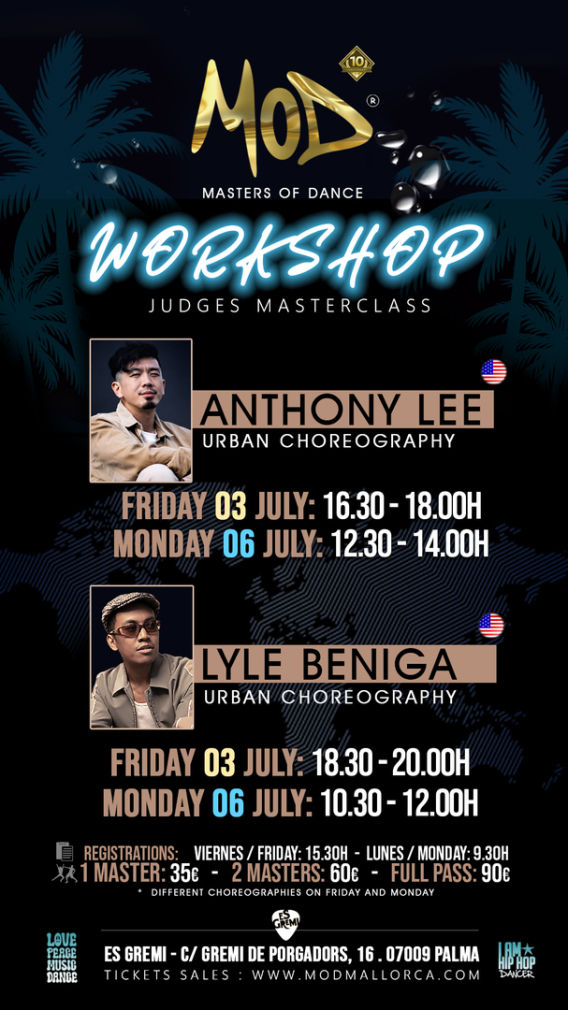 No te puedes perder los workshop de estos 2 maestros mondiales de la danza urbana. ESPECTACULAR!!